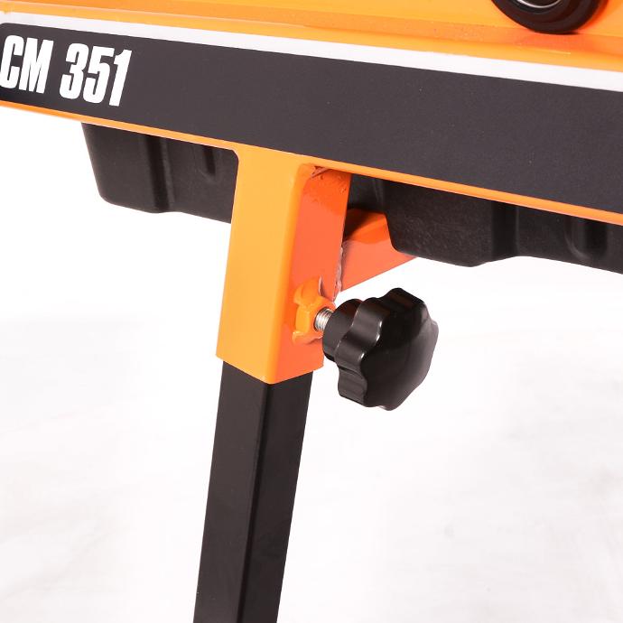 Nogi stołu są demontowane, co pozwala na łatwe przechowywanie i transport piły, zmniejszając jej wymiary.