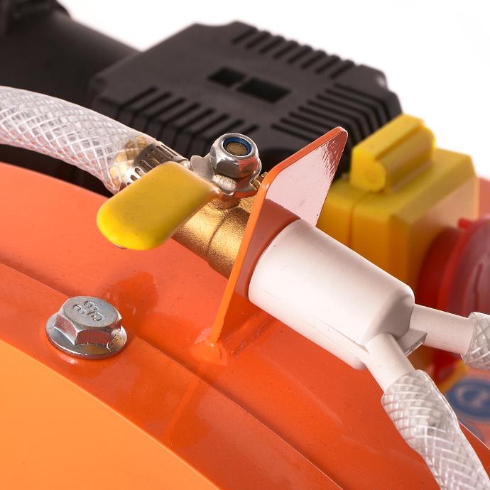 Zawór wody chłodzącej pozwala na precyzyjną regulację przepływu wody, zapewniając optymalne chłodzenie tarczy podczas cięcia.
