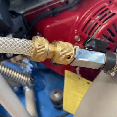Przyłącze wody posiada mosiężny zawór. Chłodzenie jest możliwe albo ze 24 litrowego zbiornika lub z sieci wodociągowej.