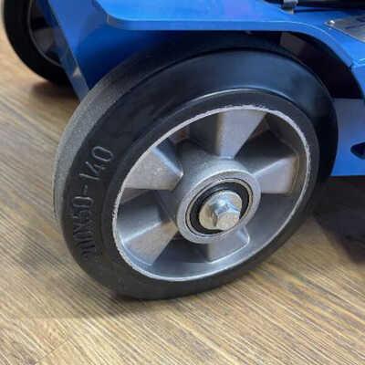 Przecinarka posiada cztery solidne koła łożyskowane i wykonane ze stopu aluminium. Solidne koła to stabilna konstrukcja i dokładne cięcie.