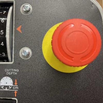 Bezpieczeństwo przede wszystkim więc przecinarka posiada wygodny wyłącznik awaryjny aby łatwo i szybko wyłączyć maszynę w razie potrzeby.