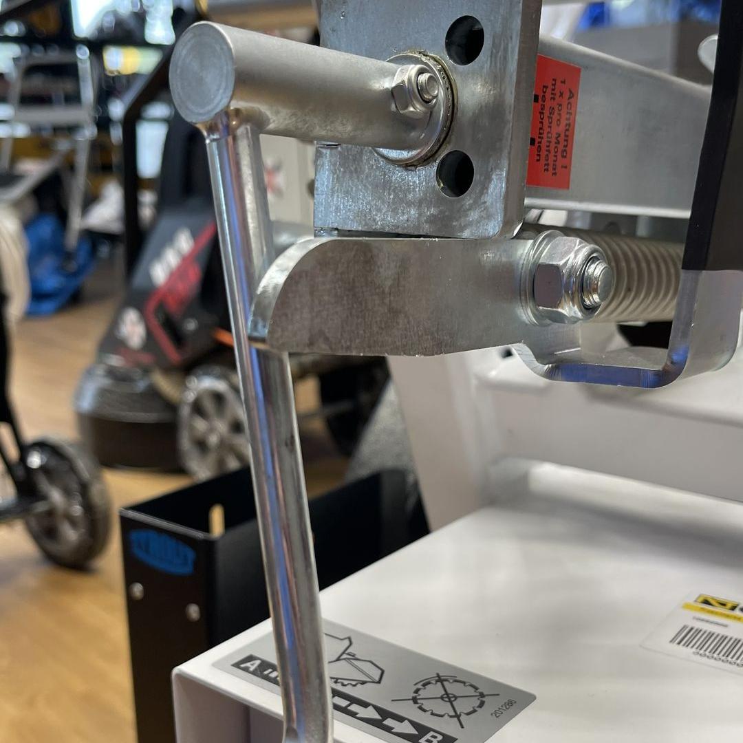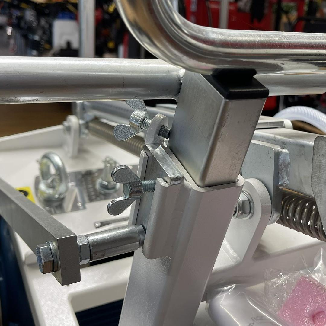 Uchwyt kierownicy jest regulowany, co umożliwia dostosowanie maszyny do wzrostu i preferencji operatora, zwiększając komfort i ergonomię pracy.