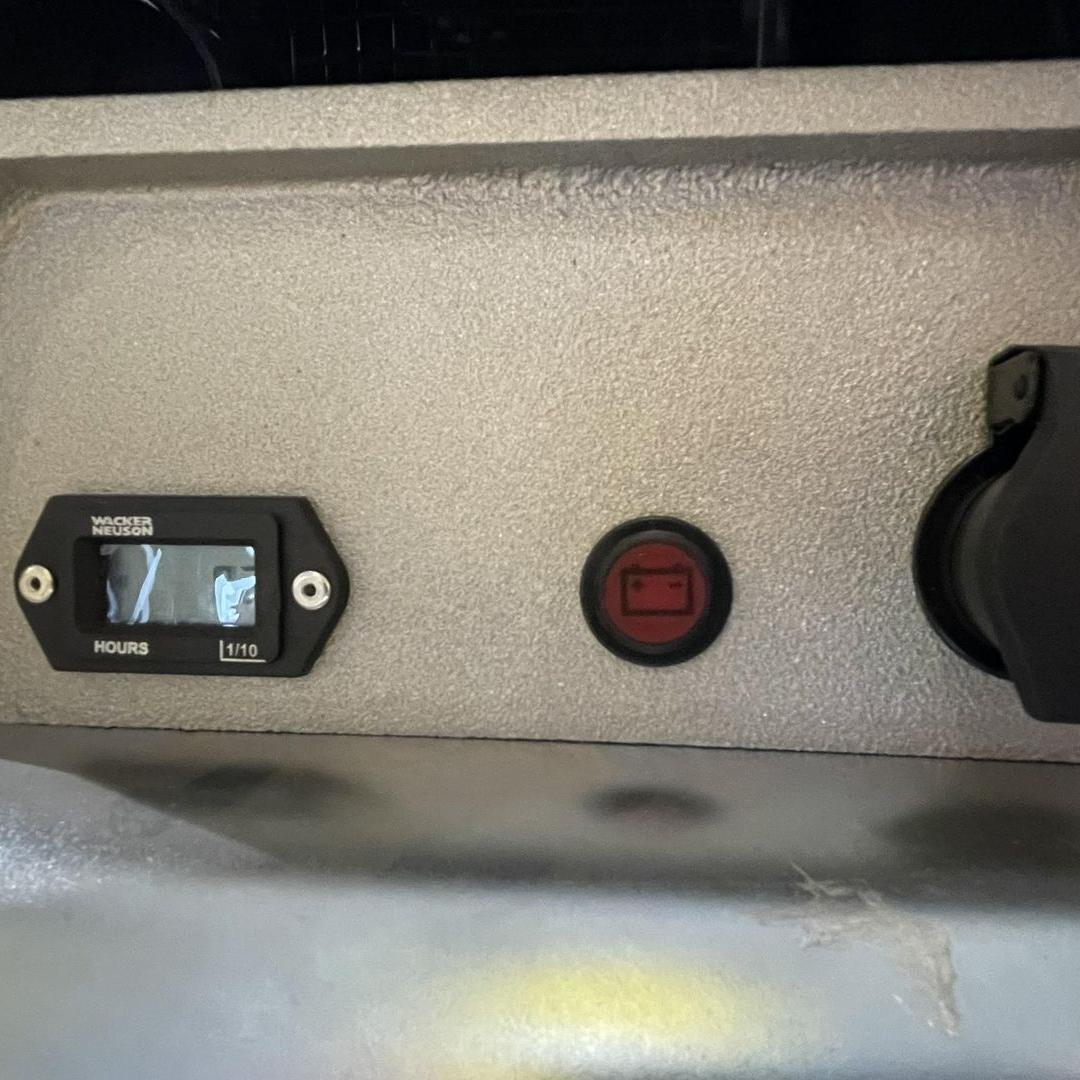 Zagęszczarka rewersyjna Wacker Neuson DPU 6555 HEH wyposażona jest w panel sterowania, który zawiera licznik motogodzin oraz kontrolkę niskiego ciśnienia oleju. Umożliwia to łatwe monitorowanie stanu technicznego maszyny oraz zachowanie bezpieczeństwa operacyjnego poprzez świadomość konieczności serwisowania.